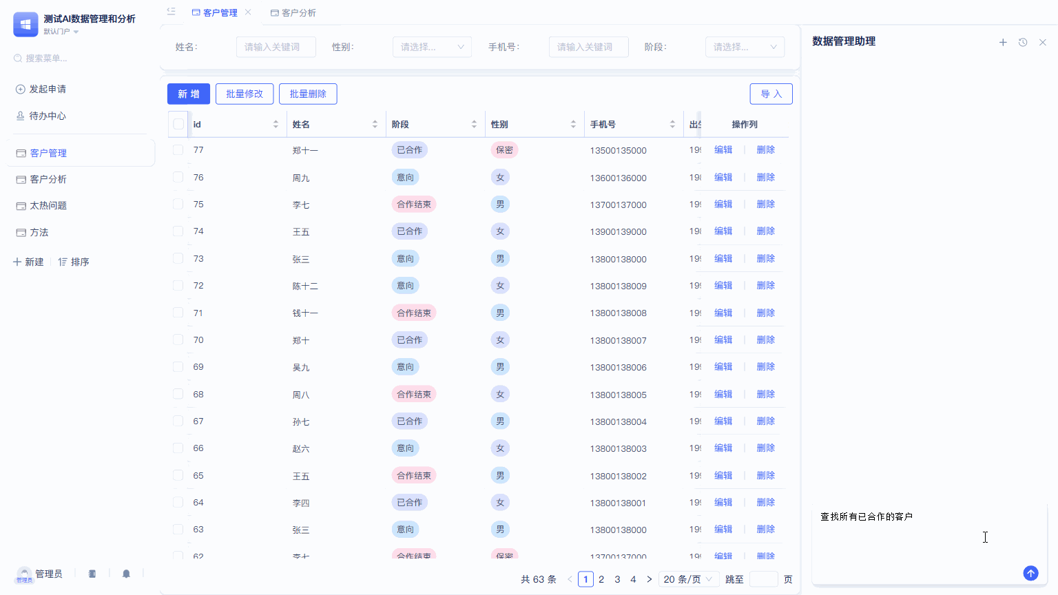 注意:常规页面里面,开启AI助手后,也可以选择 AI数据管理助手。